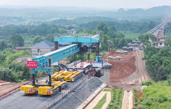 6月25日,永州市邵(阳)永(州)铁路完成全线首榀箱梁架设。图为柘刺坪特大桥施工现场。雷中祥 蒋凌志 摄影报道(湖南图片库)