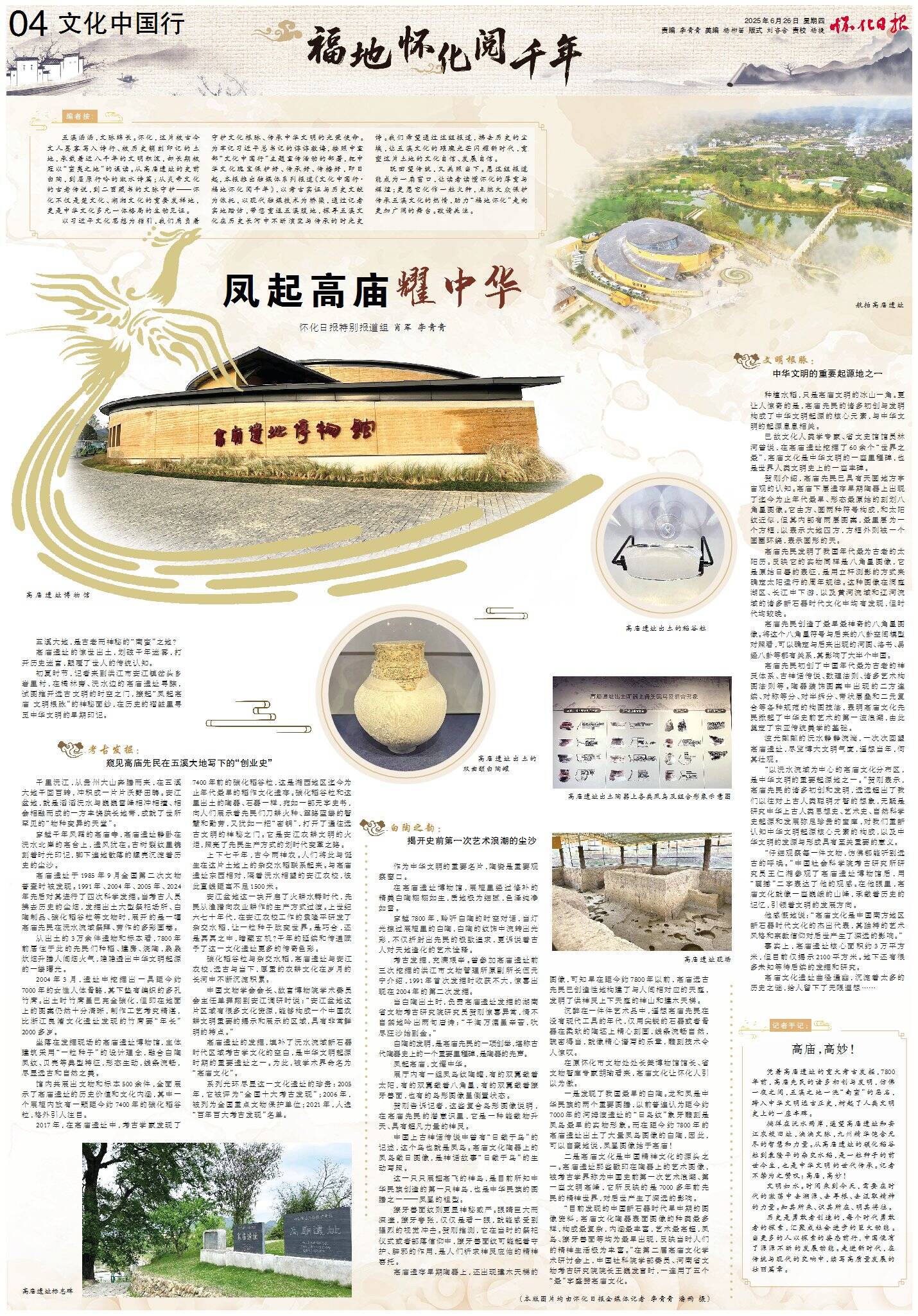 初夏时节,记者来到洪江市安江镇岔头乡岩里村,在橘林旁、沅水边的高庙遗址寻踪,试图推开远古文明的时空之门,撩起“凤起高庙 文明根脉”的神秘面纱,在历史的褶皱里寻觅中华文明的早期印记。