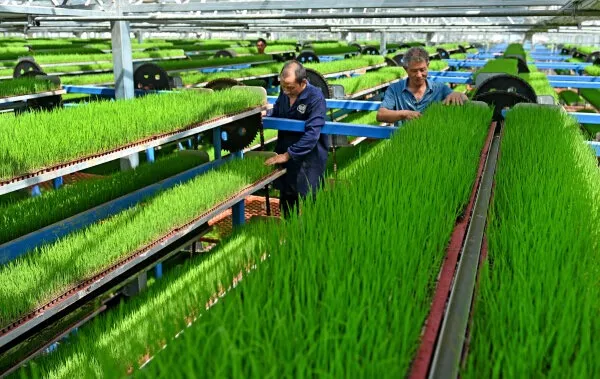 洞口县高沙镇南泥智能化育秧厂,工作人员在管护晚稻秧苗。 滕治中 摄(湖南图片库)全面研判明方向
