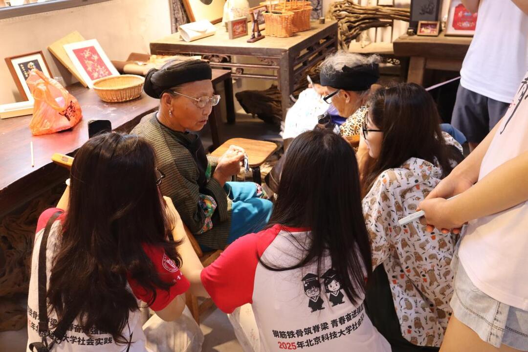 实践团围着苗家阿婆了解苗绣工艺及文化意义 通讯员供图