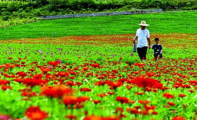 游客在冷水江市锡矿山赏花游玩。刘新山摄/光明图片