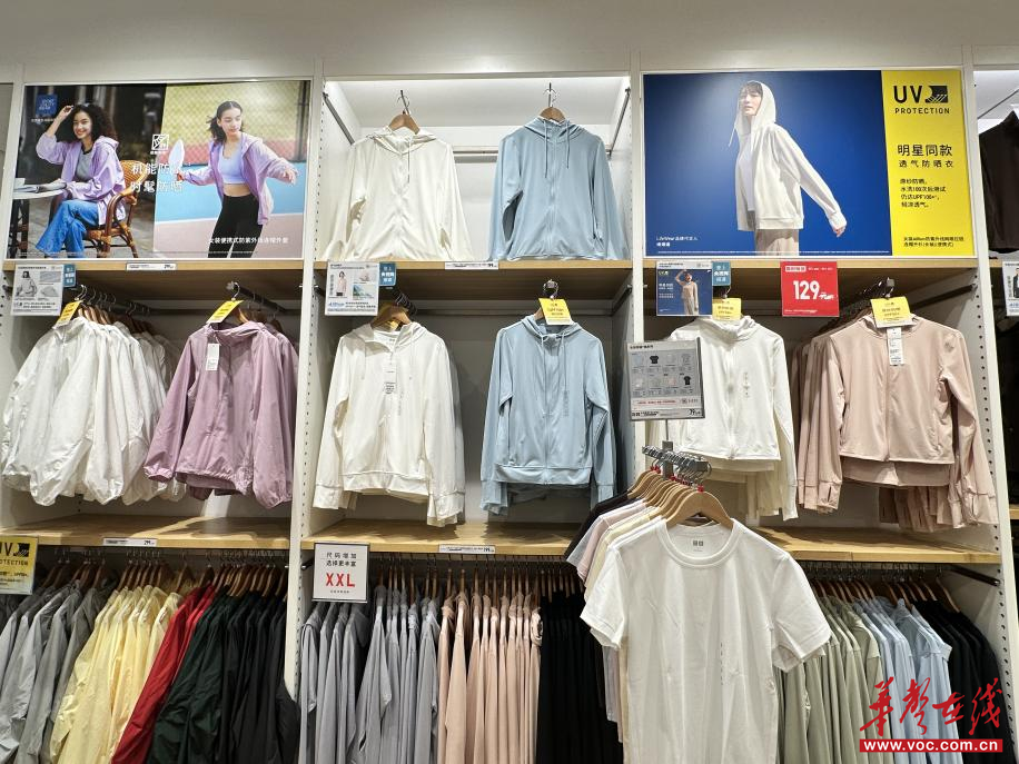 优衣库陈列的防晒衣 。朱倩萱 摄