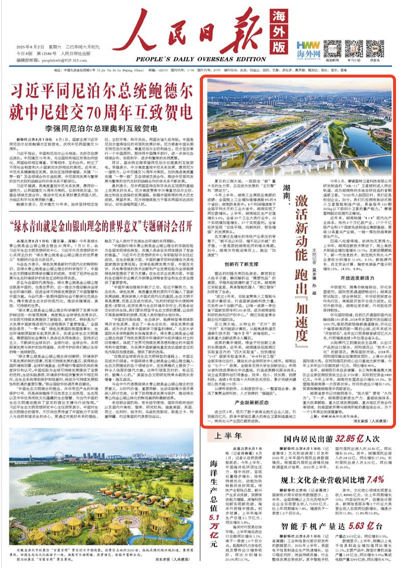 今年上半年,湖南工业展现出亮眼的成绩:全国规上工业增加值增速超8%的4个省份,湖南跻身其中;8个利润增速高于全国平均水平的工业大省中,湖南实现了两位数增长。上半年,湖南地区生产总值增长5.6%。全省39个工业大类行业中,32个实现增加值增长,37个实现盈利。全省经济呈现“总体平稳、向新向好、韧性增强”的发展势头。