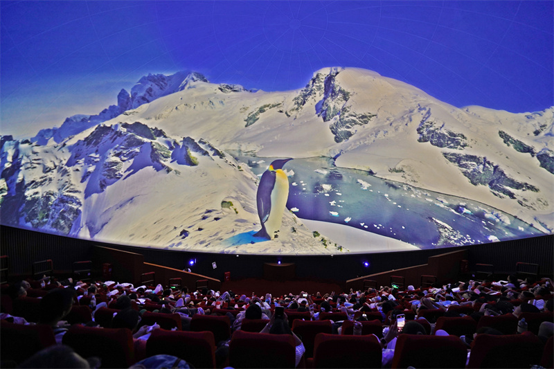 湖南省科技馆重启开放即推出两部高分球幕影片,8K影像+环绕立体声,同步国际顶尖球幕标准,单场最多可容纳160名观众。