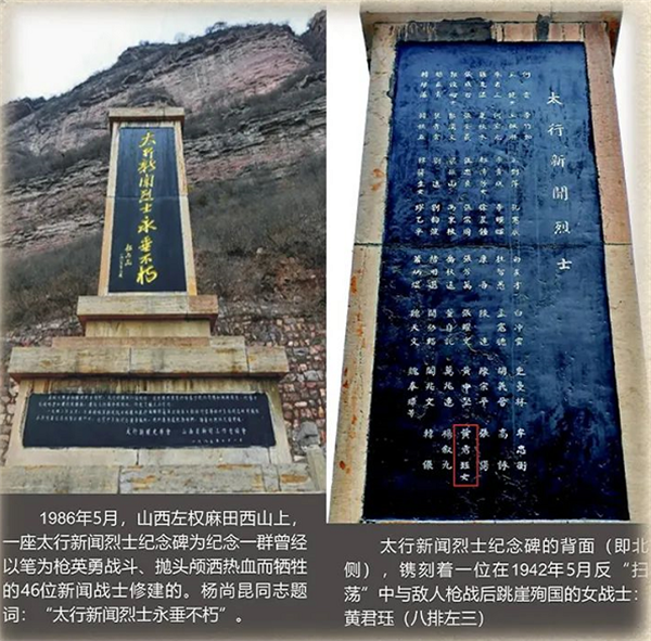 1986年,山西左权县麻田村西山上竖起一座太行新闻烈士纪念牌,纪念曾经以笔为枪、英勇战斗,抛头颅洒热血的46位新闻战士。