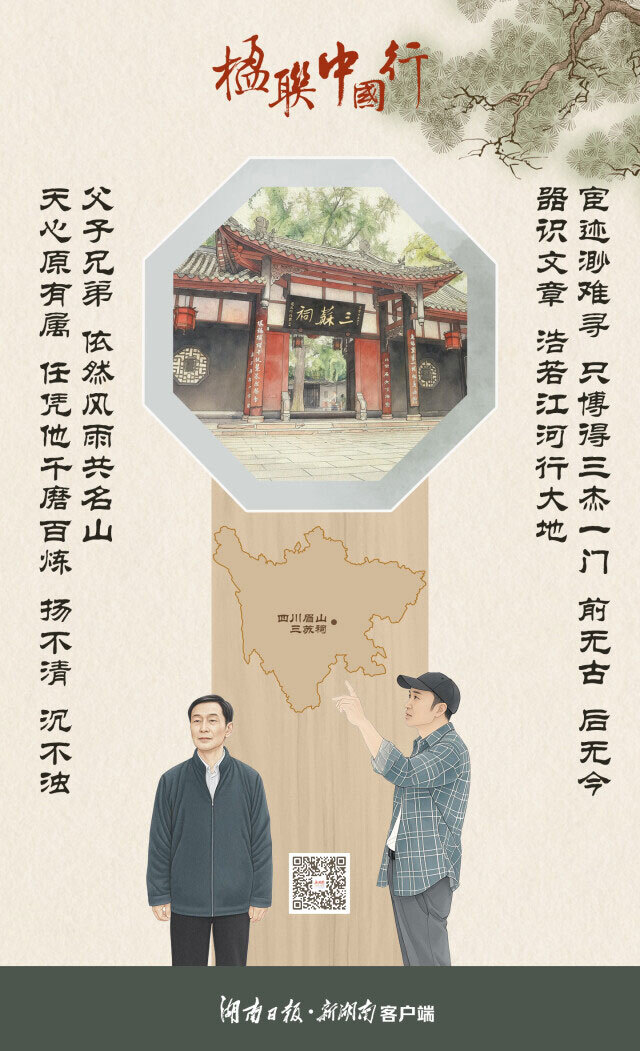 这副楹联,是清代云南丽江拔贡杨庆远任眉州州判时,于光绪十九年(公元1893年)撰写的。我们邀请的解联嘉宾、四川大学文学与新闻学院教授周啸天找遍了三苏祠的楹联,认为这副联全面准确地评价了苏洵、苏轼、苏辙父子兄弟的文学成就和人格魅力,有资格充任三苏祠的“镇祠之联”。