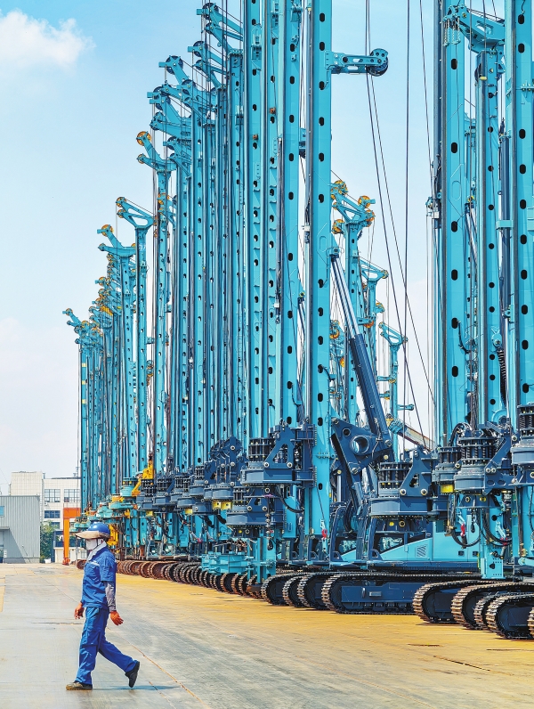 9月15日,长沙经开区山河工业城,SWE950F挖掘机首次亮相。该挖掘机是山河智能全新开发的一款大型矿山挖掘机。创新基因融入企业发展。截至今年6月,山河智能近5年累计申请专利1180件,其中发明专利146件,参与制定标准64项;诞生了全球最大桩架、最长臂挖机、最大后倒桅旋挖钻机、首创双层快压沉管机等一大批“首台套”突破性创新产品。山河智能液压静力压桩机、旋挖钻机、全液压履带桩架,成为国家级制造业单项冠军产品。
