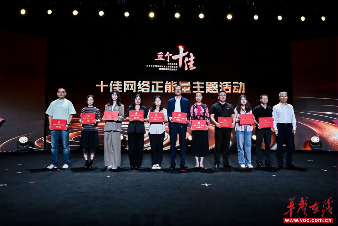 湖南日报社主创的作品《文化中国行·时光里的古村落》《闯东盟·丝路上的湘商》《湖湘独一档·走近“镇馆之宝”》、华声在线新闻网站主创的作品《H5|洞见未来!新质生产力,湖南有“画”说》《穿越时空 AI上长沙》《“常德是个好地方”——全国网络媒体“湖南e周”主题宣传活动》、三湘都市报主创的作品《衡阳特教老师刘玲琍感动中国》荣获第三届湖南正能量“五个十佳”网络精品。