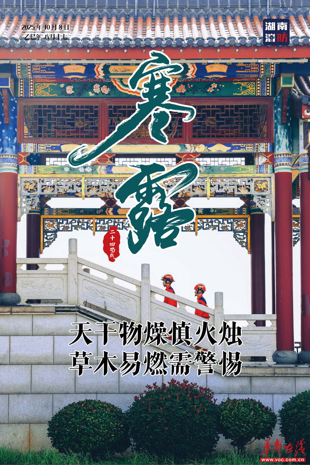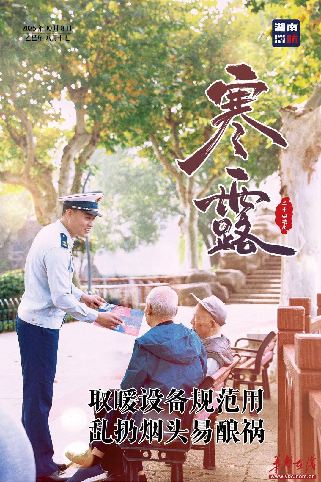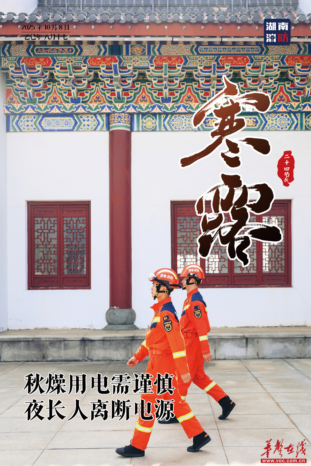 “袅袅凉风动,凄凄寒露零”,随着秋风渐凉,寒露节气如约而至。寒露过后,露水增多、寒气更甚,常是昼暖夜凉。湖南消防提醒您:防寒保暖不忘消防安全,一起看看有哪些需要注意的吧。