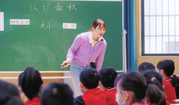 后来在学校安排下,我慢慢专注于数学教学。为了把抽象的概念具象化,我常常自费买教具。教“面积”时,我从网上买来一平方厘米的小方块,让孩子们亲手拼凑;教“重量”时,我带来不同重量的米袋,让他们轮流拎一拎。我始终相信,动手实操的教学才更加完整、深刻。