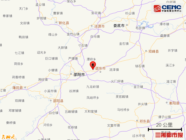 华声在线10月17日讯(全媒体记者 李致远 通讯员 卜蕾)据中国地震台网正式测定,10月16日23时46分在湖南邵阳市邵东市发生3.4级地震(塌陷),震中位于北纬27.28度,东经111.67度。据中国地震台网记录,这是湖南邵阳本月第三次出现有感地震。
