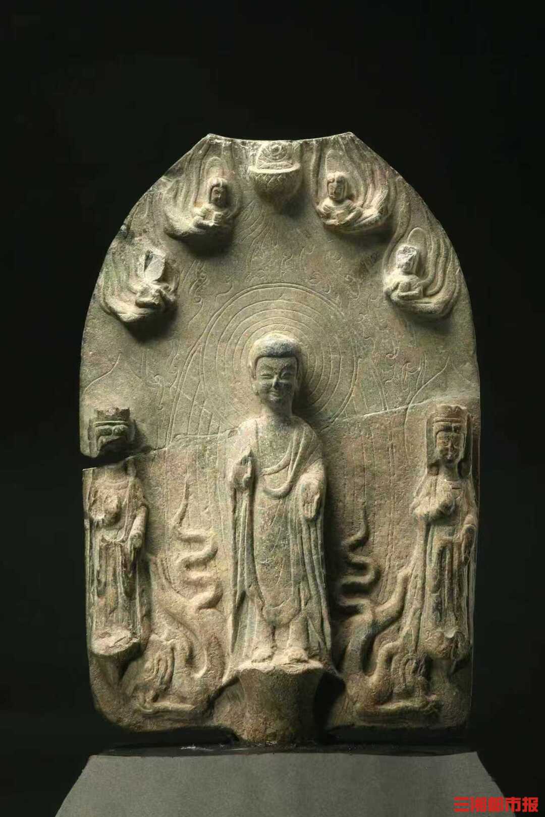 夏侯封珞造背屏式弥勒佛菩萨三尊像。湖南博物馆供图