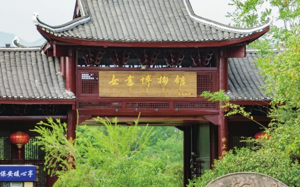 基于对女书习俗的保护与传承,女书博物馆落地浦尾村,也称“女书复活岛”,俯瞰似女性胚胎,四面被水环抱。该馆建于2002年,建筑面积2500平方米。自今年9月提质改造后,主体建筑设有女书寻源、女书悦读、女书习俗、奇幻女书等6个主题单元,并配置文创商店、女书学堂、书法办公室等区域。此外,该馆还融合科技的手段,通过互动触屏、投影展演等数字化形式来展现女书魅力。