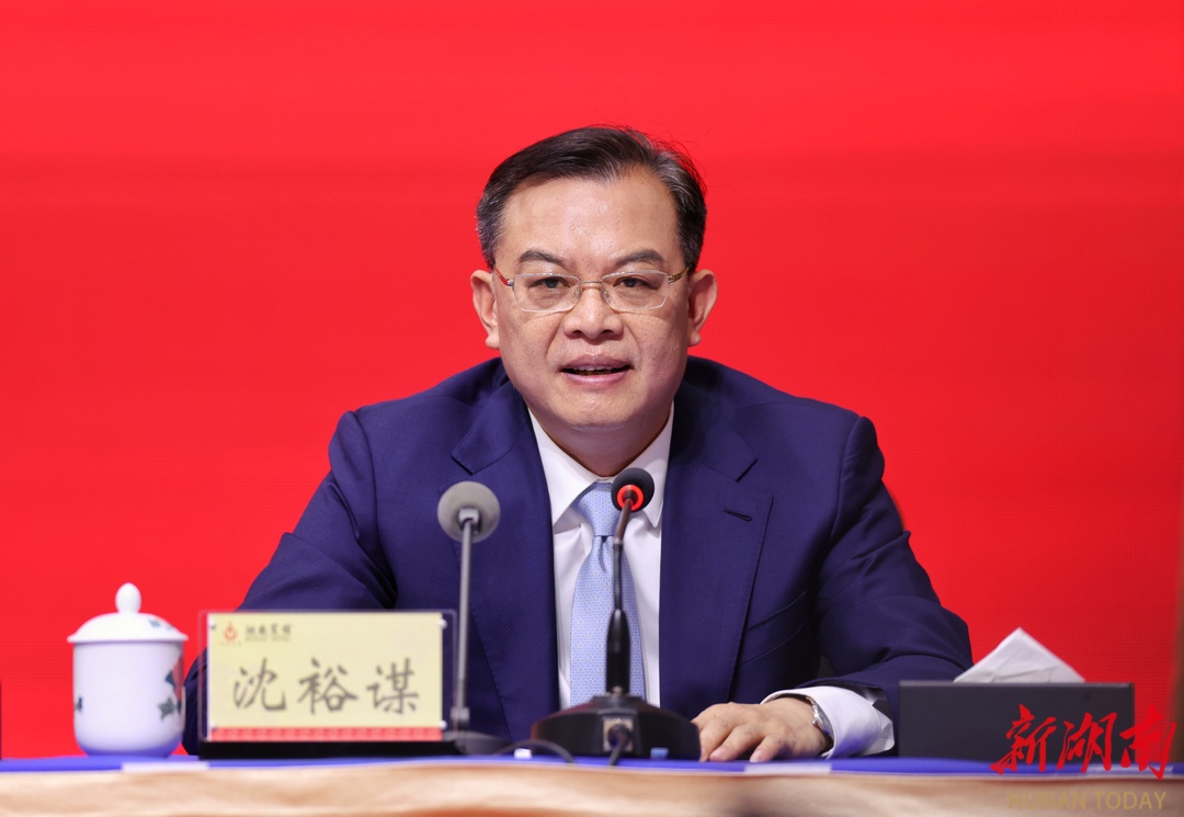 湖南省商务厅党组书记、厅长沈裕谋回答记者提问。