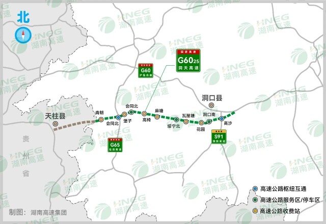按照规划,项目全线设高沙(枢纽)、花园、瓦屋塘、麻塘、高椅、堡子、会同北(枢纽)、青朗8处互通式立交,以及洞口南、会同北2处服务区和绥宁北1处停车区。同步建设麻塘、青朗2条互通连接线,桥梁92座、隧道13座,桥隧比近50%。其中,路线起点至青朗互通设计时速120公里,青朗互通至终点段设计时速100公里。