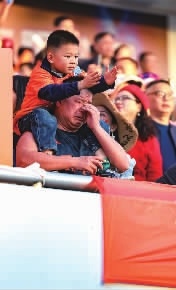 11月29日,一名邵阳队球迷带孩子来支持主队。