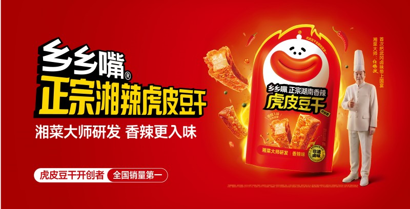 作为“中国卤都”武冈的代表品牌,乡乡嘴虎皮豆干的底蕴源自对武冈非遗卤味技艺的传承与创新。产品坚持草本慢卤,添加30多种天然草本香料,经过5小时反复慢卤入味。为凸显正宗湖南香辣特色,乡乡嘴特邀湘菜大师任伟政担任首席味型研发官,融入紫苏、山胡椒油等湖南本土香料,形成自己独特的香辣口味,破解行业“千辣一味”的痛点。