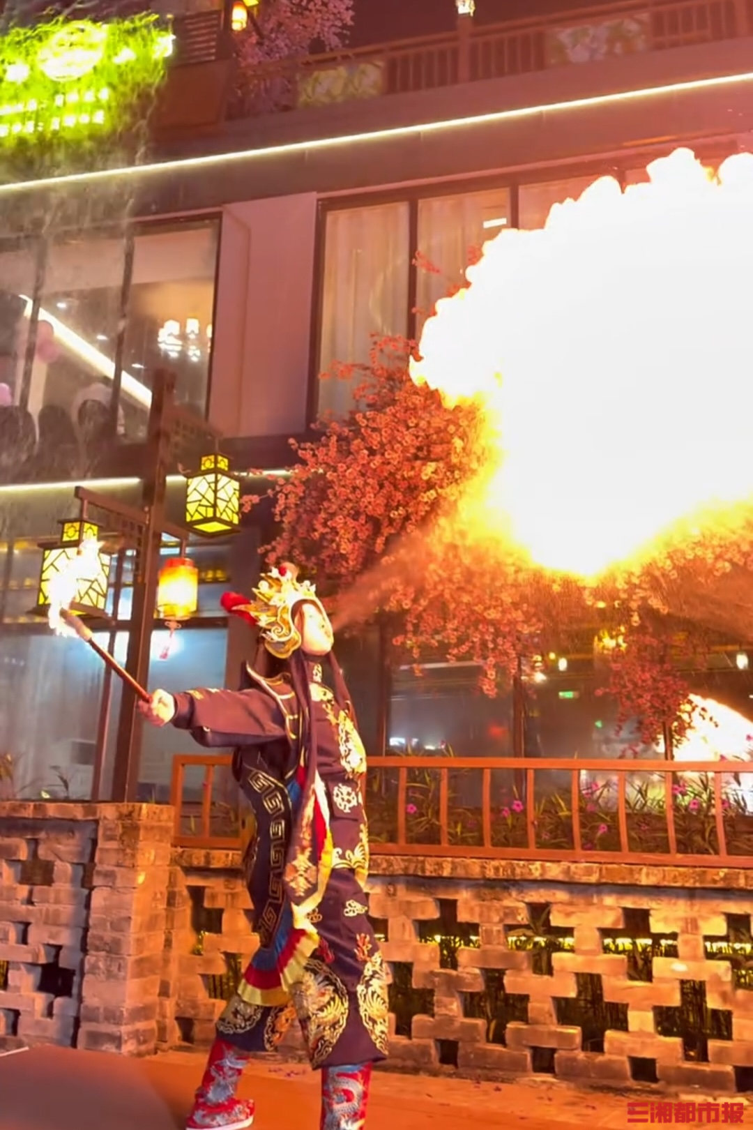 许凤婷正在进行川剧吐火表演。