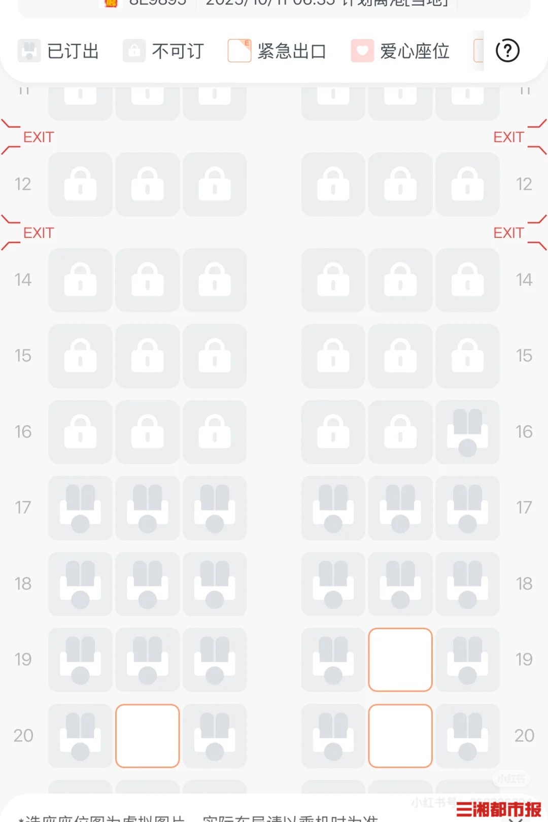 最近,部分读者向记者吐槽道,自己购买机票后准备线上值机选座,却发现大量座位已被“锁定”。前排、安全出口、靠窗和靠过道等心仪的座位几乎都无法选择。