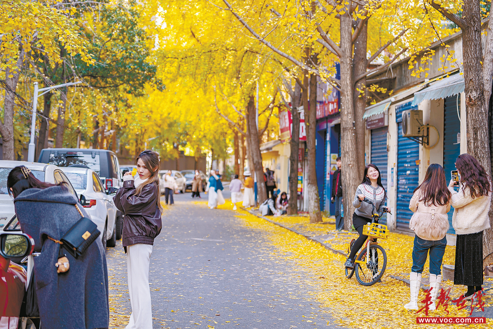 12月3日,长沙市开福区国庆新村迎来银杏最佳观赏期,金黄的叶片在冬日阳光下熠熠生辉,吸引众多游客前来拍照打卡。
