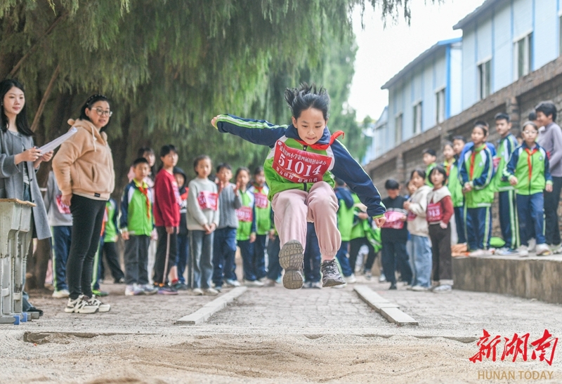 12月4日,道县第四小学,学生在参加跳远比赛。近日,该校举行田径运动会,学生们在赛场上奋勇争先,尽情享受体育运动带来的快乐。蒋克青 陈敏敏 摄影报道(湖南图片库)