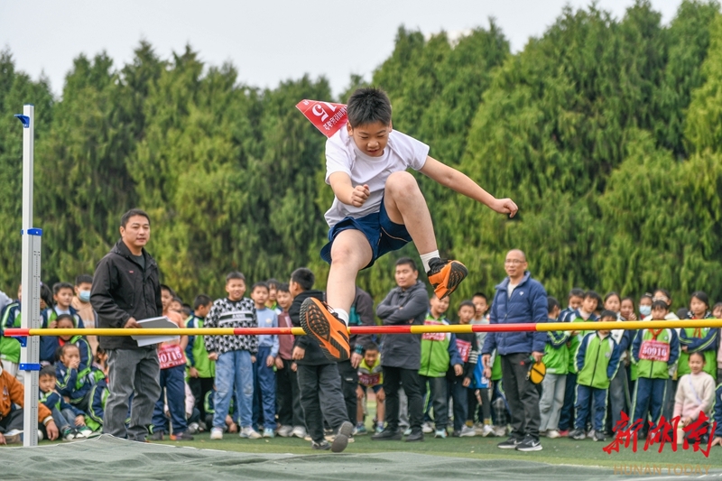 12月4日,道县第四小学,学生在参加跳高比赛。近日,该校举行田径运动会,学生们在赛场上奋勇争先,尽情享受体育运动带来的快乐。蒋克青 陈敏敏 摄影报道(湖南图片库)