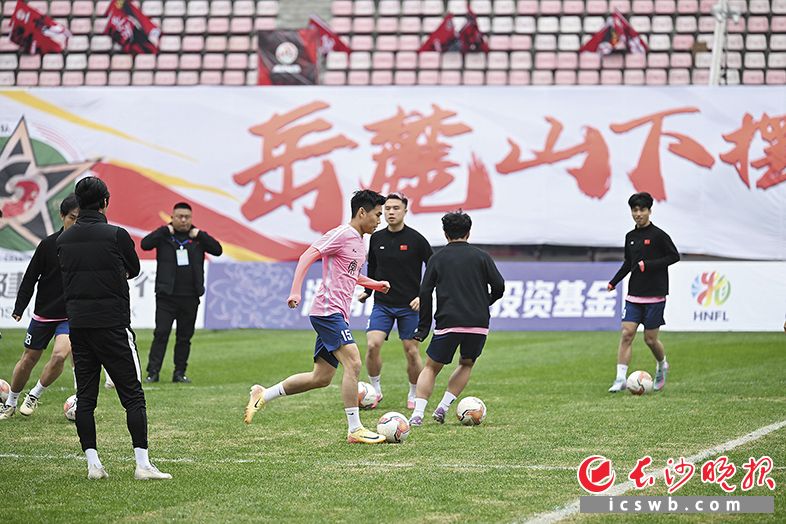 5日下午,常德队在长沙贺龙体育场进行赛前踩场训练。长沙晚报全媒体记者余劭劼 摄