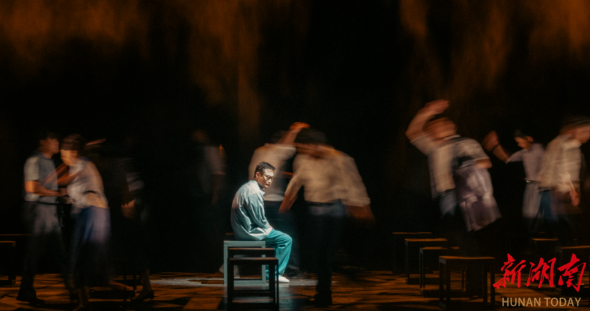 全剧在写意的舞台空间里,以24把小方凳、1盏象征父亲精神传承的老油灯,随演员动作灵活转换戏剧场景,叙事一气呵成,写实与写意巧妙融合,节奏流畅且富有感染力。