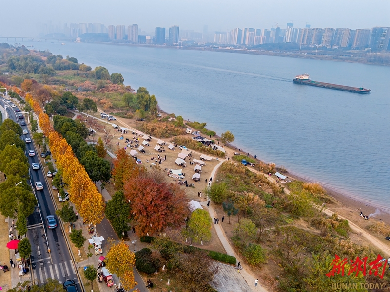 12月7日,湖南湘江新区,市民在湘江畔露营休闲。当天,长沙天气晴好,不少市民来到湘江畔露营休闲,尽享冬日暖阳。