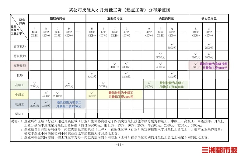 《技能人才最低工资分类参考指引》示意图。图源:人社部官网