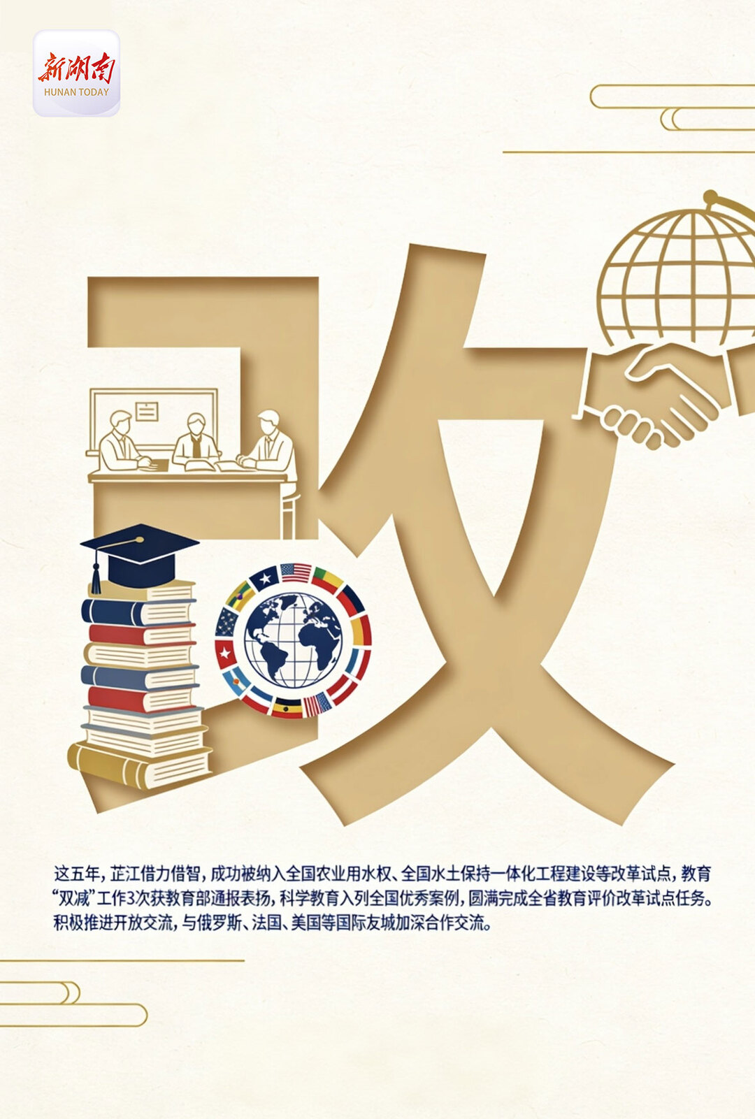 这五年,芷江借力借智,成功被纳入全国农业用水权、全国水土保持一体化工程建设等改革试点,教育“双减”工作3次获教育部通报表扬,科学教育入列全国优秀案例,圆满完成全省教育评价改革试点任务。