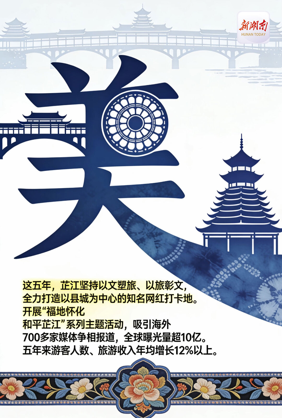 成功举办乔氏中式八球大师赛、全国民族原创排舞大赛,承办湖南春季乡村文化旅游节,常态开展“福泽侗乡·龙腾芷江”等节庆活动,推出全国首个县级AI文旅宣传片《和平福地·AI芷江》,开展“福地怀化 和平芷江”系列主题活动,吸引海外700多家媒体争相报道,全球曝光量超10亿。