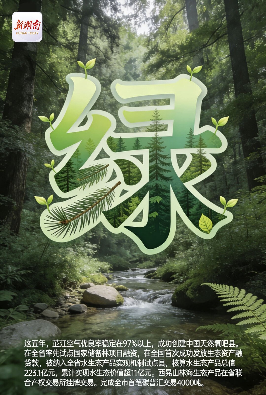 这五年,芷江空气优良率稳定在97%以上,成功创建中国天然氧吧县。推进生态产品价值实现机制,在全省率先试点国家储备林项目融资,在全国首次成功发放生态资产融资贷款,被纳入全省水生态产品实现机制试点县,核算水生态产品总值223.1亿元,累计实现水生态价值超11亿元。西晃山林海生态产品在省联合产权交易所挂牌交易。完成全市首笔碳普汇交易4000吨。