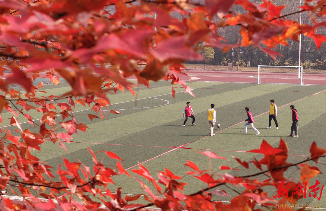 12月8日,学生在南华大学运动场上进行足球训练。沐浴着冬日暖阳,该校学生纷纷走出教室参与体育锻炼,校园里处处跃动着朝气蓬勃的身影。