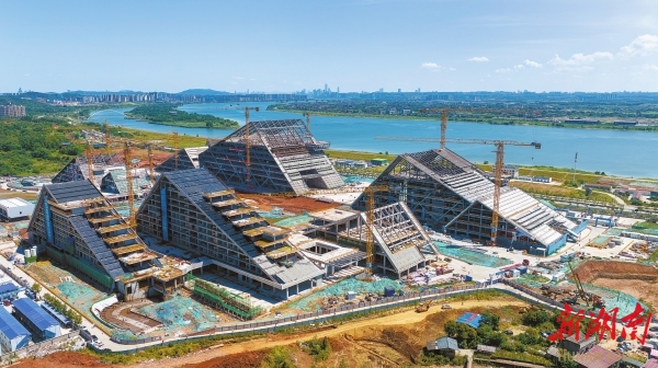 7月3日,位于湖南湘江新区的湘江科学城科学交流中心建设现场一片繁忙。华声在线全媒体记者 童臻熙 摄
