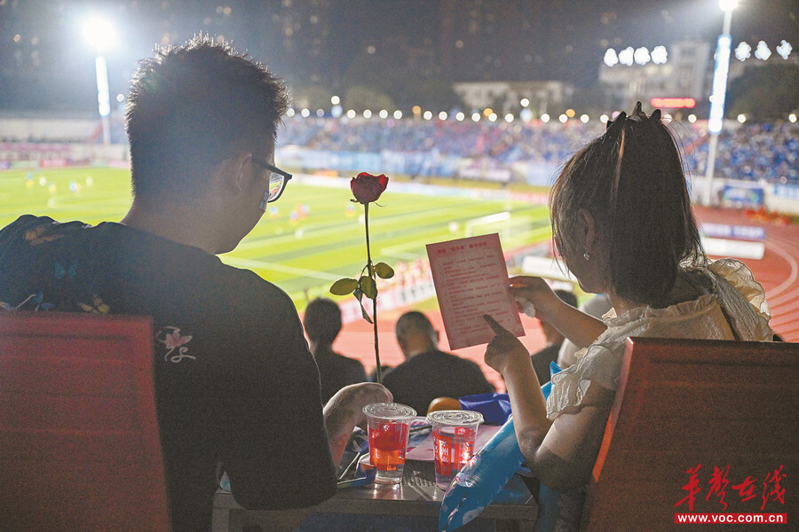 10月12日,球迷在“相亲票”区观赛,浪漫而甜蜜。