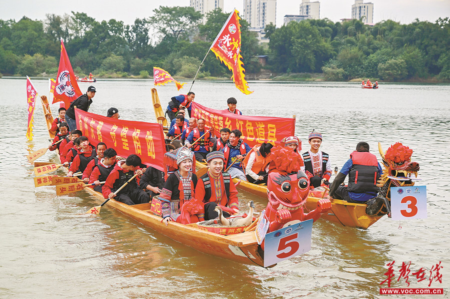 10月25日,道县周敦颐广场码头,100名获得“船票”的幸运球迷乘坐6艘道州龙船出征,助阵湘超联赛永州队。