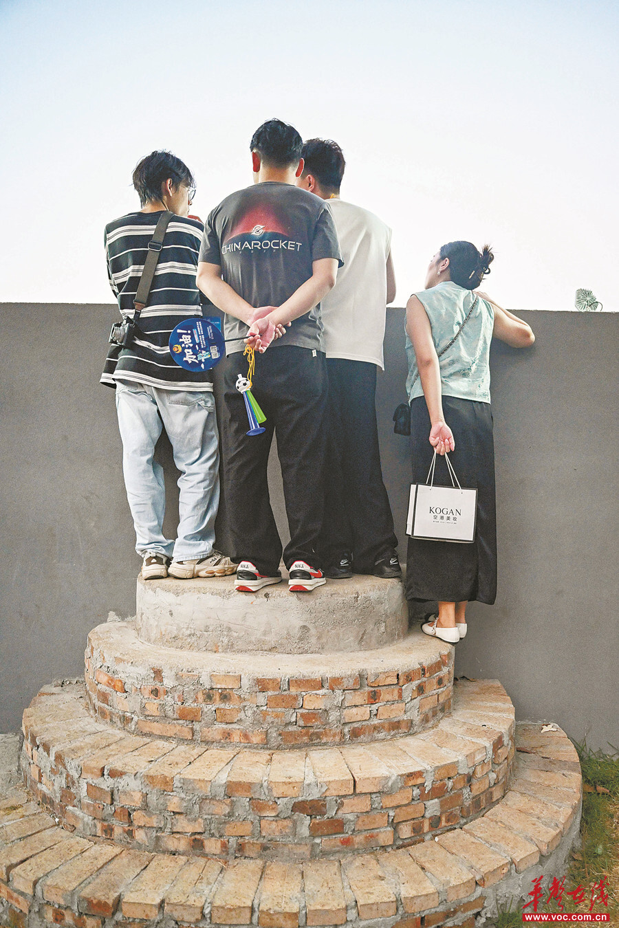 10月23日,小朋友在“洞票”(牛眼为观赛的洞孔)位置打卡。