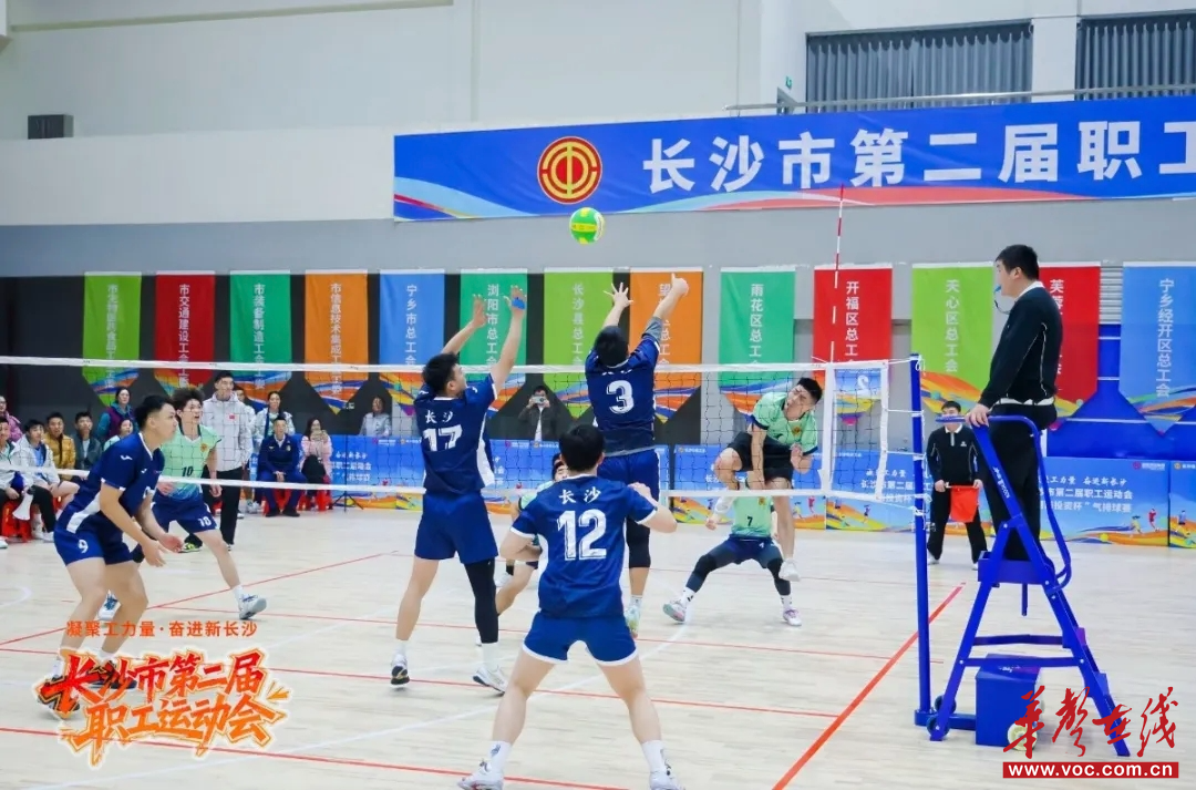 当天,长沙市第四工人文化宫内掌声和欢呼声不断,长沙市第二届职工运动会的收官赛事——气排球赛迎来巅峰对决。发球、接球、弹跳、扣杀……职工选手们铆足干劲、奋力一搏,向冠军冲刺。