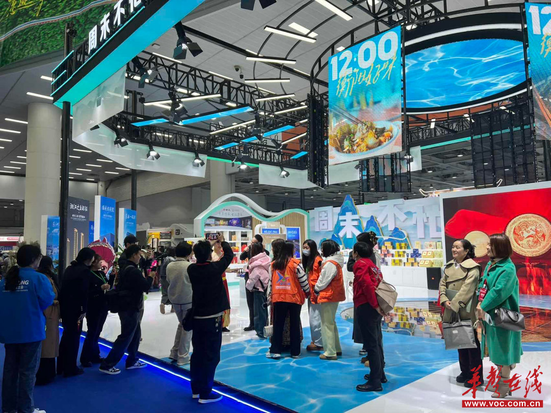 现场人气持续高涨,不少游客聚集在衡阳馆拍照打卡,丰富多元的展品让不同年龄段的群体都找到了逛展的乐趣。来自长沙的游客李女士称:“感觉衡阳馆是最好看又最有特色的,展品也很有新意,准备这周末就带家人去衡阳,看看南岳衡山,尝地道美食。”此外,多家参展商也对活动的人气和效果给予大力肯定,现场不仅成交不断,还收到了多家外地经销商的咨询。
