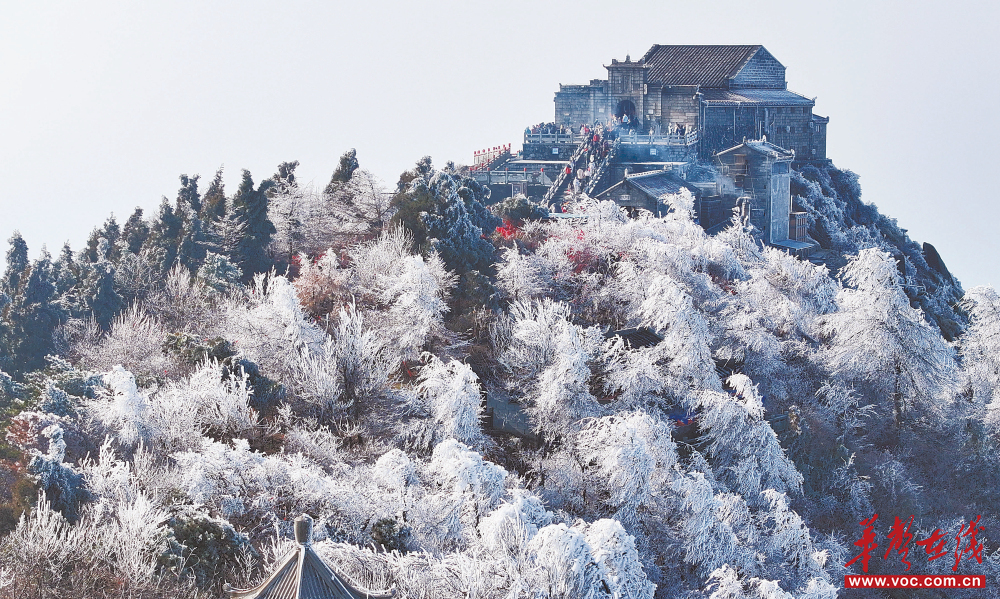 12月13日,南岳衡山迎来雪后雾凇奇观,银装素裹的林木晶莹剔透,吸引众多游客前来观赏。曹正平 文兰 摄影报道(湖南图片库)