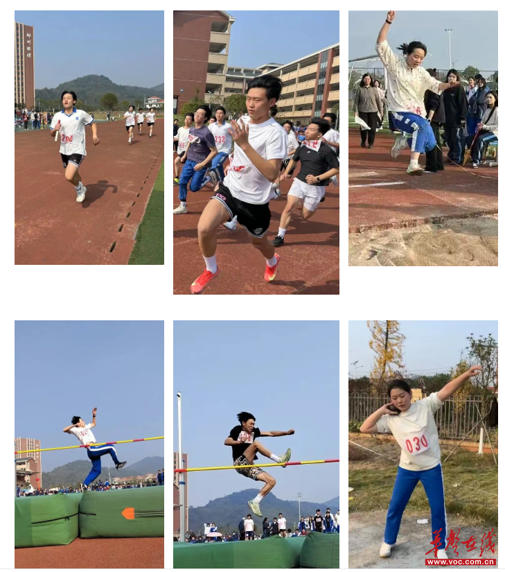 开幕式结束后,各项比赛正式开赛。本届运动会赛事内容丰富,涵盖个人、团体与集体趣味等多个项目:个人项目分男子组与女子组,包含 100 米、200 米、400 米、800 米、1500 米、铅球、跳高、跳远等,团体项目设有 4×100 米接力、4×400 米接力,此外还特别设置了学生与教职工的趣味项目,让更多师生参与其中,在运动中放松心情,享受快乐,凝聚力量。
