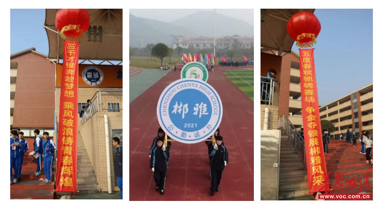 开幕式上,主席台两边红底金字的空飘对联“五度春秋驰骋赛场 争金夺银展郴雅风采;三千才俊奔赴梦想 乘风破浪铸青春辉煌”在冬日暖阳中格外醒目,为这场青春盛会渲染出热烈昂扬的浓厚氛围。