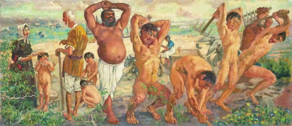 《愚公移山》油画底稿。 46cmx107.5cm 芒果美术馆藏