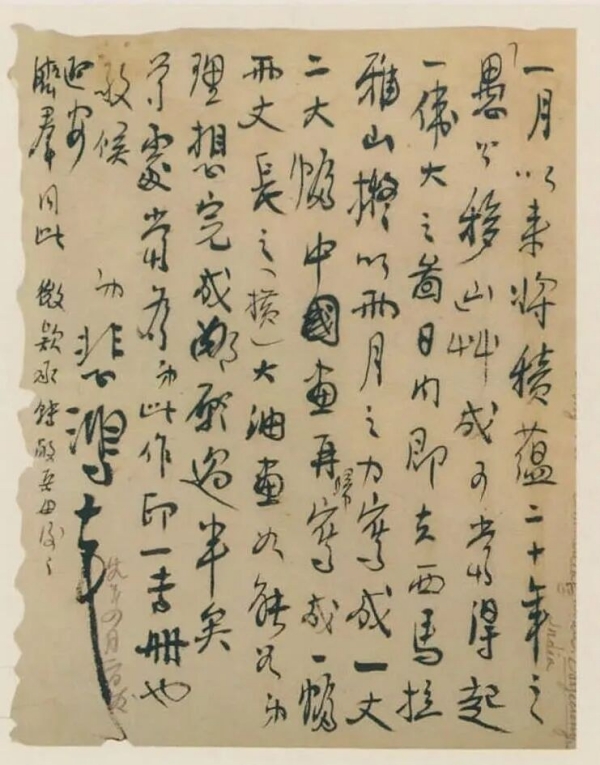 1940年4月,徐悲鸿在一封致朋友舒新城的信中简述:“一月以来将积蕴二十年之《愚公移山》草成,可当得起一伟大之图。日内即去喜马拉雅山,拟以两月之力,写成一丈二大幅中国画,再归写成一幅两丈长之(横)大油画,如能如弟理想完成,敝愿过半矣。尊处当为弟此作印一专册也。”作为《中华书局藏徐悲鸿书札》中的一件重要物证,这封信不仅清晰地记录了徐悲鸿创作三稿《愚公移山》的时间序列,还以“可当得起一伟大之图”之自评高度自信地表达了视《愚公移山》为其时代经典的历史判断。