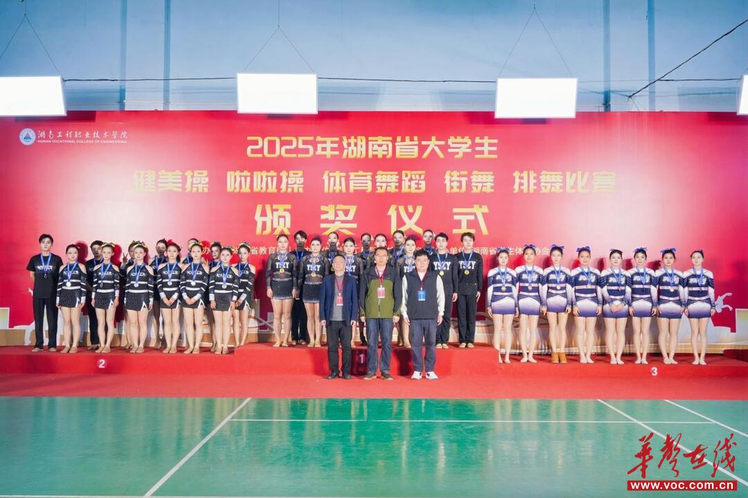 12月10日,由湖南省教育厅主办的湖南省大学生啦啦操比赛在湖南工程职业技术学院举行。来自全省63所高校的1093名运动员同台竞技。湖南有色金属职业技术学院代表队在教练黄彩霞、肖红艳、游小夫的指导下奋勇争先,最终荣获高职高专甲组团体总分第一名,取得历史性突破。在集体项目中,队伍表现抢眼,夺得集体花球自选动作第一名、集体爵士自选动作第二名及混合小团体技巧啦啦操第四名。双人项目亦表现稳健,分获双人街舞第三、双人花球第六和双人爵士第七名,充分体现了队员个人技术与团队配合的兼备。