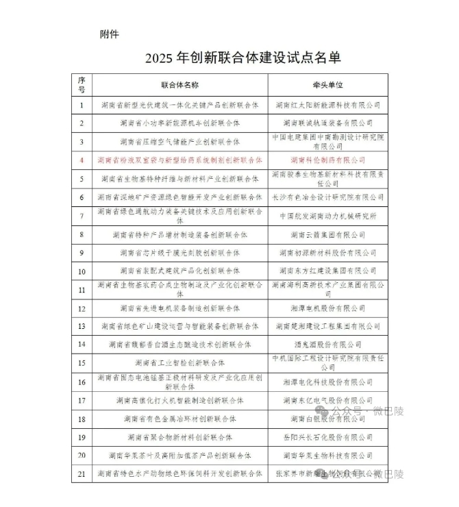 华声在线12月22日讯 近日,从省科技厅获悉,湖南科伦制药有限公司“湖南省粉液双室袋与新型给药系统制剂创新联合体”和岳阳县高新技术产业开发区“湖南省复杂制剂和合成生物科技成果转化中试基地”,经申报推荐、形式审查、专家评审、专家论证、会议审议等程序,现已公示,岳阳县医药健康产业将再增2个高能级创新平台。
