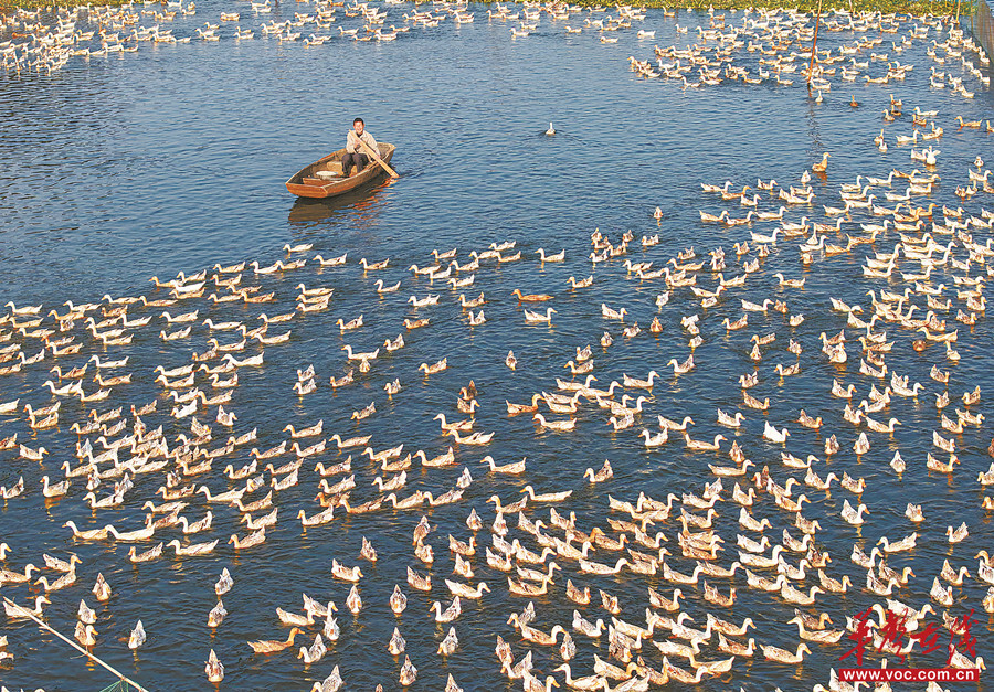 12月25日,衡东县霞流镇李花村,养鸭农户在放养鸭子。近年来,该村充分发挥禽蛋养殖加工传统优势,通过创办“村社合一”合作社带动村民养鸭,并引进加工企业延伸产业链,有效提升鸭蛋附加值,促进农户增收。