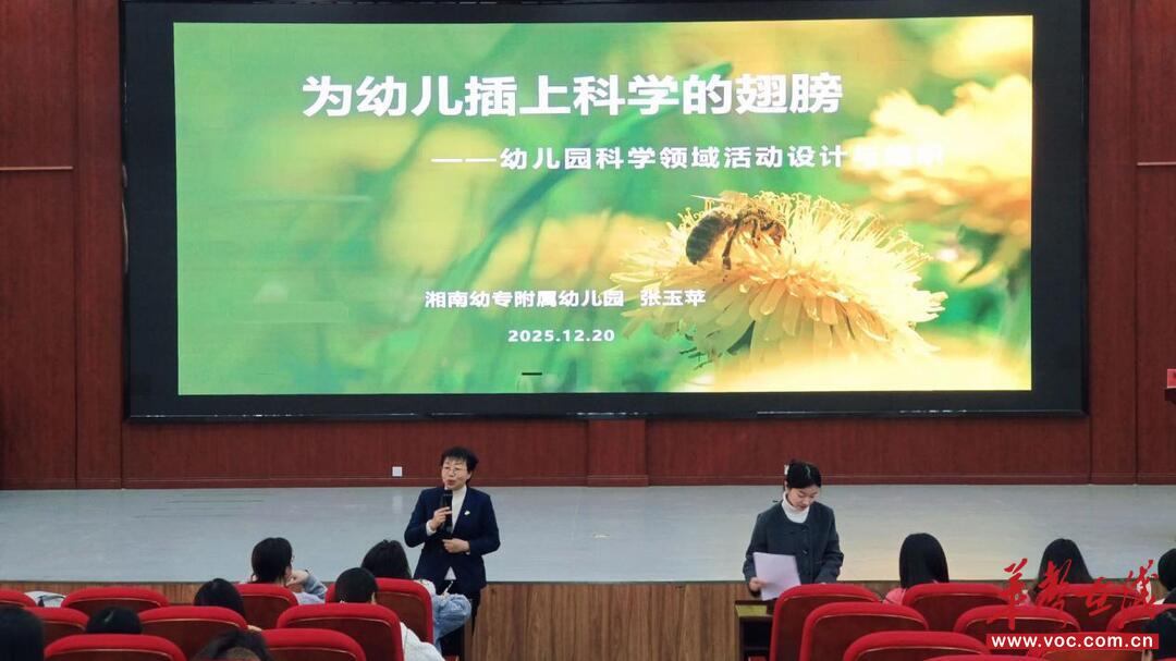 活动首日研修聚焦阅读启智与科学探真两大主题。长沙师范学院郭咏梅教授以《幼小衔接视域下的幼儿园早期阅读活动指导》为题,结合教学实例,从绘本甄选、活动设计到师幼互动,为教师搭建起早期阅读教学的实操框架,引导教师以阅读为桥梁,助力幼儿感知世界、表达自我。机关二幼朱军妹老师结合班级实践,分享了阅读环境创设与幼儿阅读行为观察支持的实操经验。下午,湘南幼专附属幼儿园张玉苹书记带来《为幼儿插上科学的翅膀——幼儿园科学领域活动设计与指导》专题讲座,她立足幼儿生活经验,拆解科学活动设计流程,并组织教师现场研磨教案、互评互议。机关幼儿园宋庆丹老师在分享中坦言,此次学习让她重新定位科学教育的价值,未来将更注重为幼儿创设动手探究的空间。