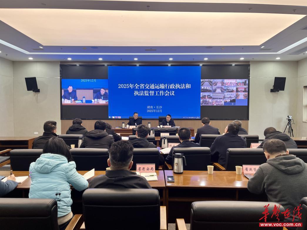 华声在线12月26日讯(全媒体记者 肖晴岚 通讯员 曾鸣)今天,湖南省交通运输行政执法和执法监督工作会议在长沙召开。会议总结2025年交通运输行政执法和执法监督工作,分析形势、理清思路,部署2026年重点工作,为全省交通运输高质量发展提供有力执法保障。省交通运输厅党组成员、副厅长罗恒出席并讲话,厅法制和执法监督处及相关处室负责人、厅直相关单位分管负责人在主会场参会,各市州交通运输局分管负责人、法制(执法监督)部门以及执法机构主要负责人在市州分会场参会。